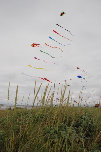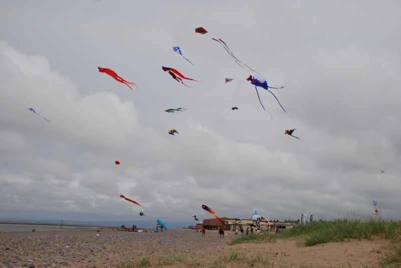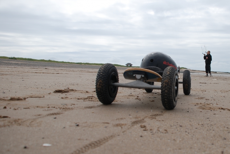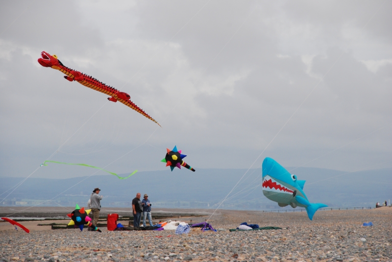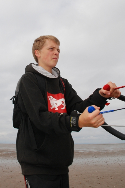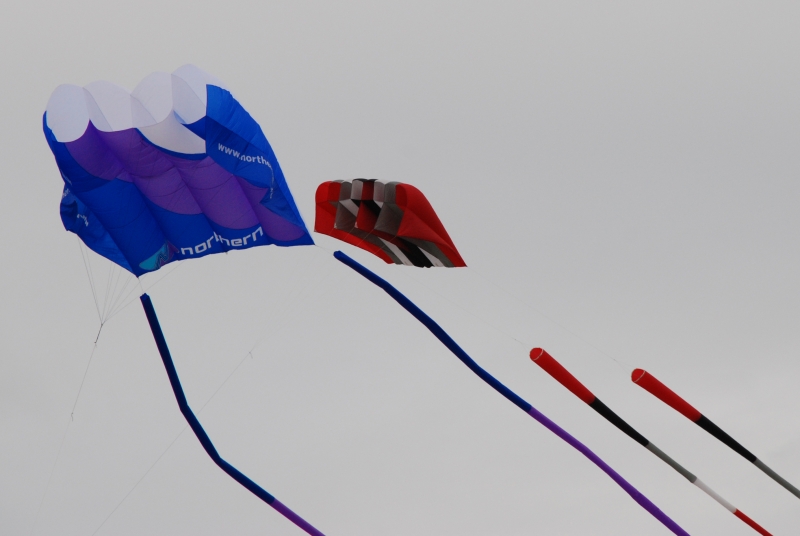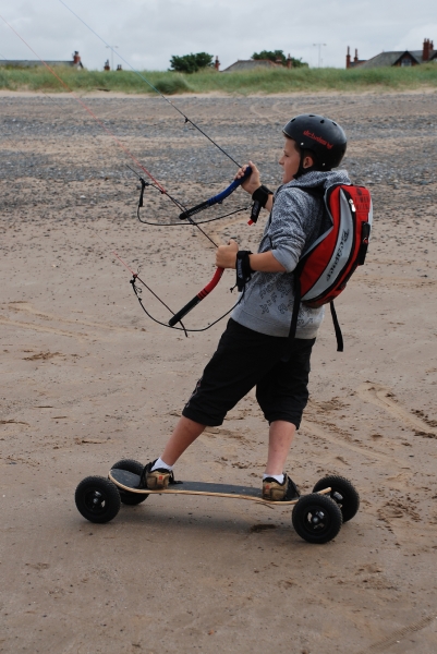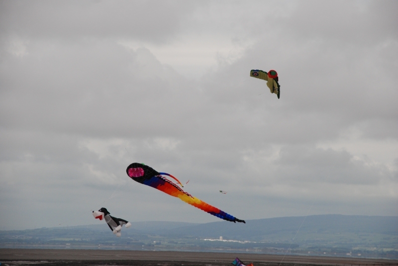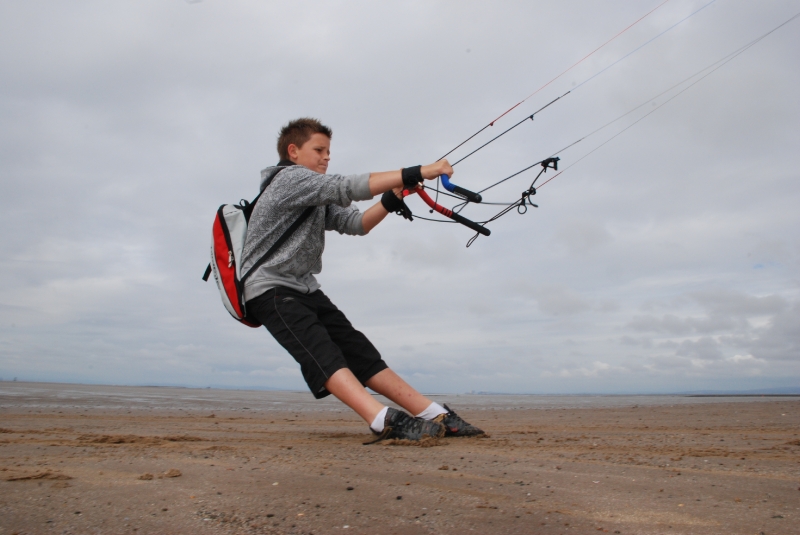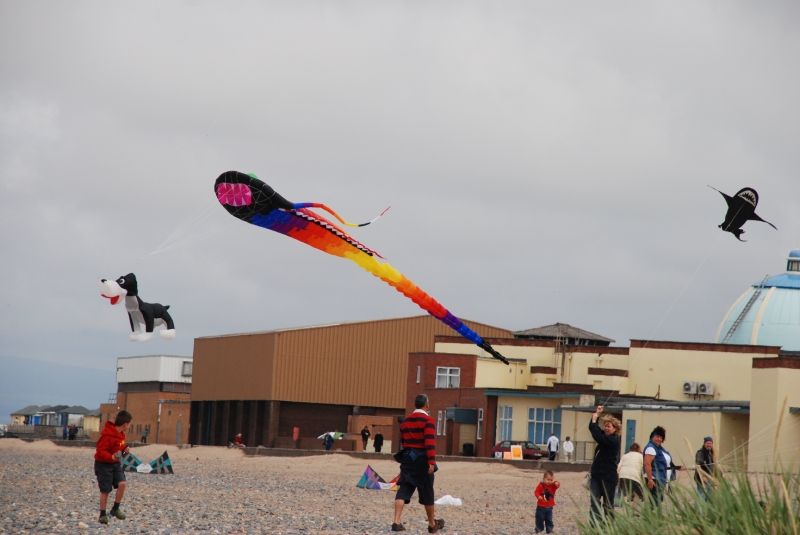 June’s Northern Kite Group fly-in took place on Fleetwood beach on 21st June 2009. The day started a bit damp but soon brightened up with wonderfully smooth onshore wind. The boys enjoyed some power kiting and landboarding whilst the dogs just enjoyed digging and chasing stones.