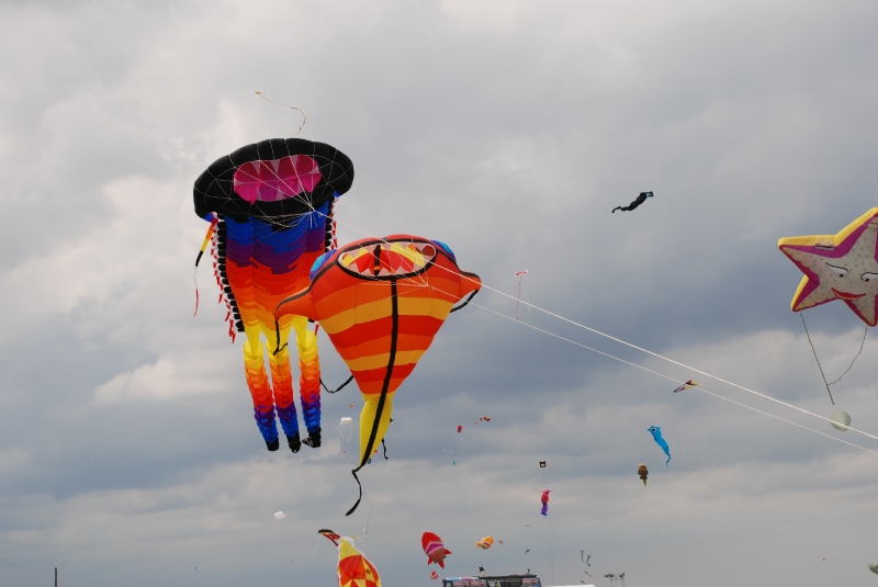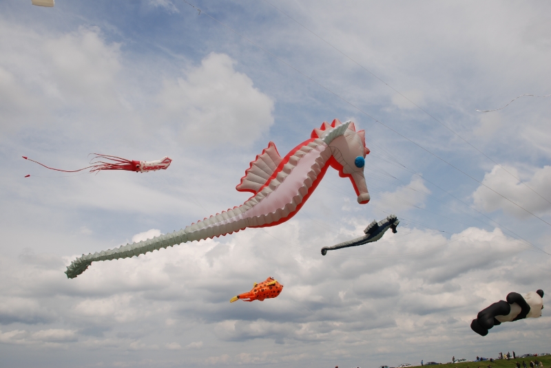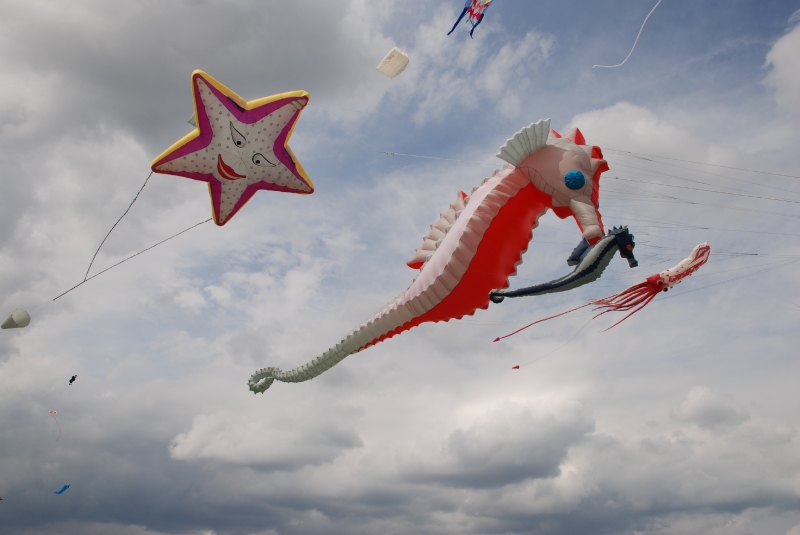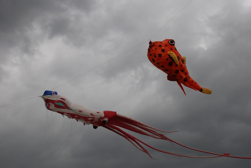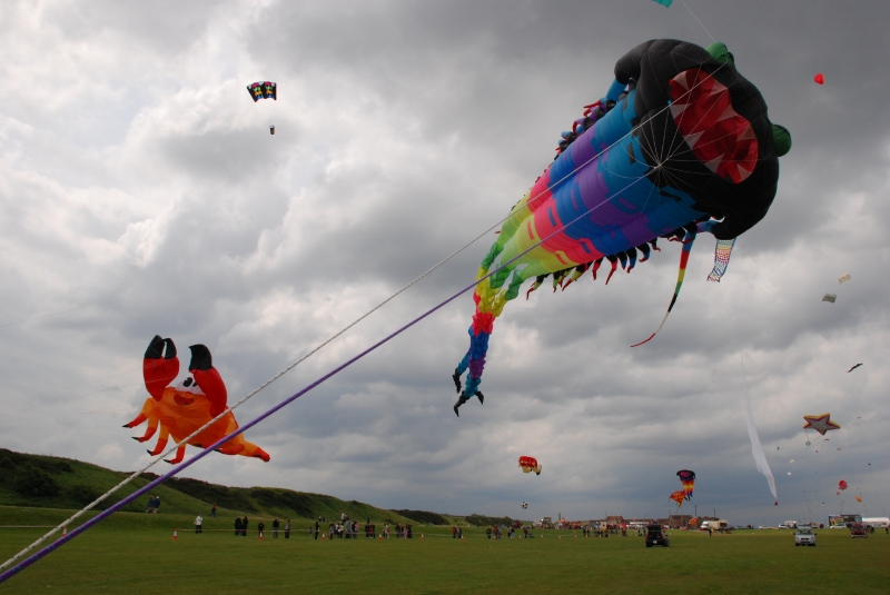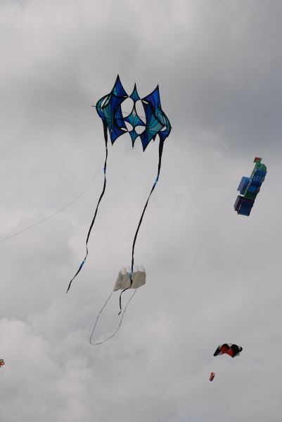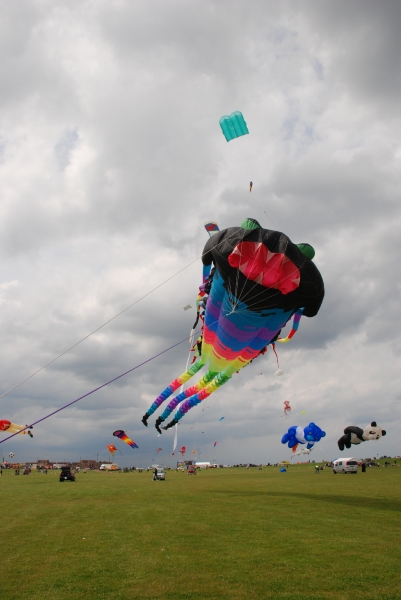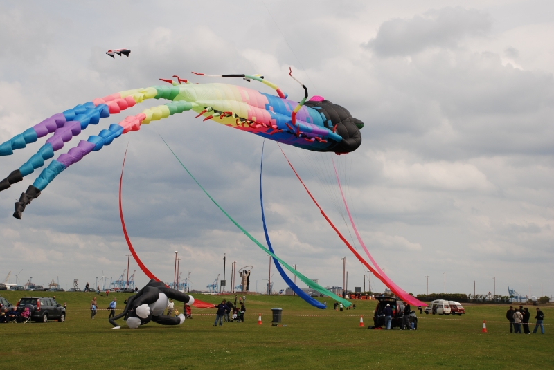 The Wirral International Kite Festival was held at New Brighton on Saturday 6th June and Sunday 7th June 2009. Yet another great Wirral festival with a mix of international and UK fliers. An Edwardian kite competition was held over the weekend with points given for stability, angle, etc. The weather was testing – damp and very windy but everyone enjoyed themselves.