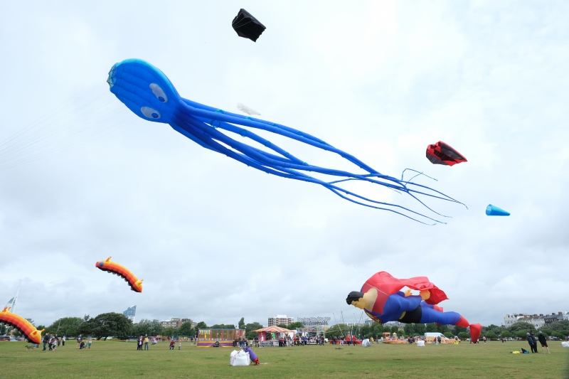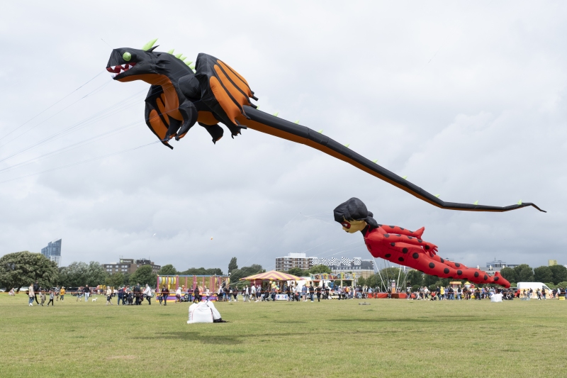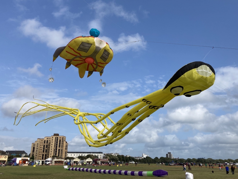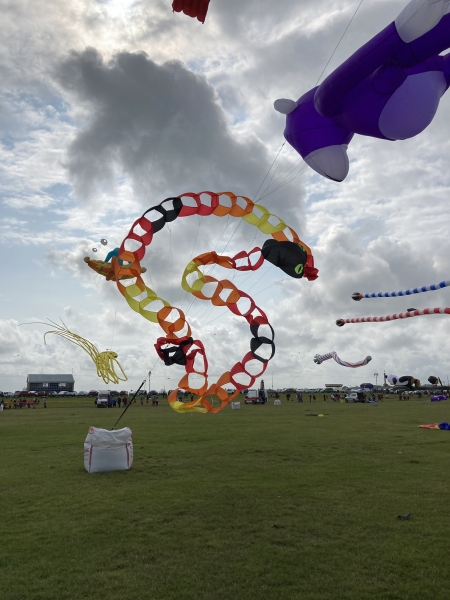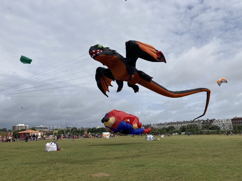 The Portsmouth Kite Festival arranged by Jon and Gill Bloom was held on 7th and 8th August 2021. We were really honoured to be invited back to fly at Portsmouth especially as we were last there 11 years ago (the year of the dinosaur). It was especially great to meet up with lots of old friends after such a long time but also as this was the first major festival anywhere in the UK for 2 years.