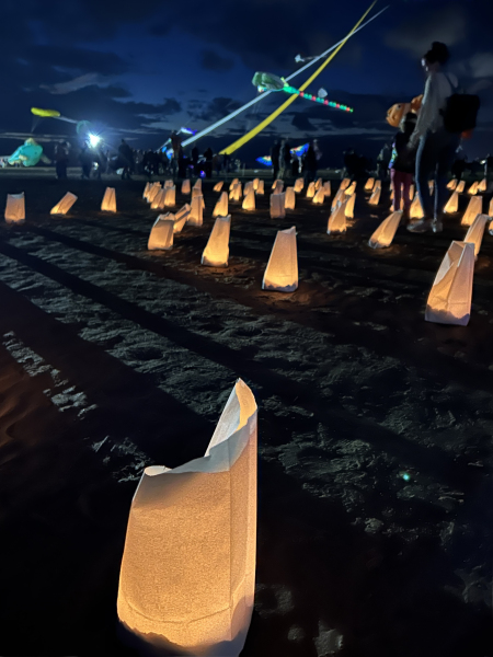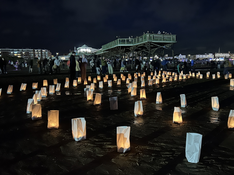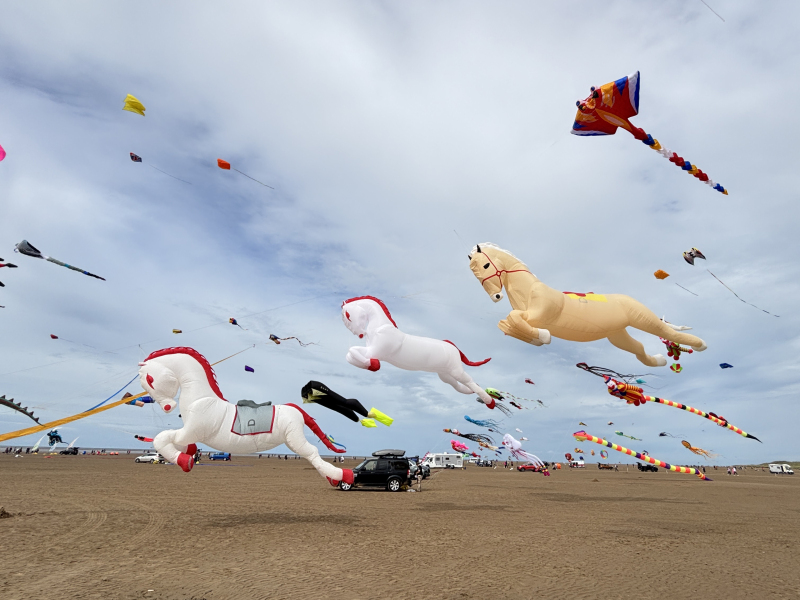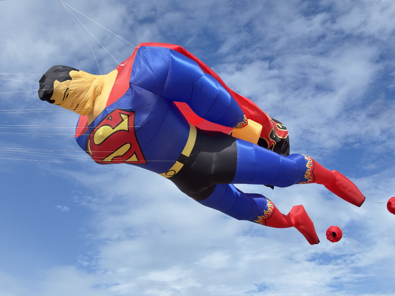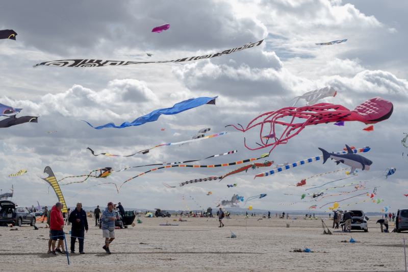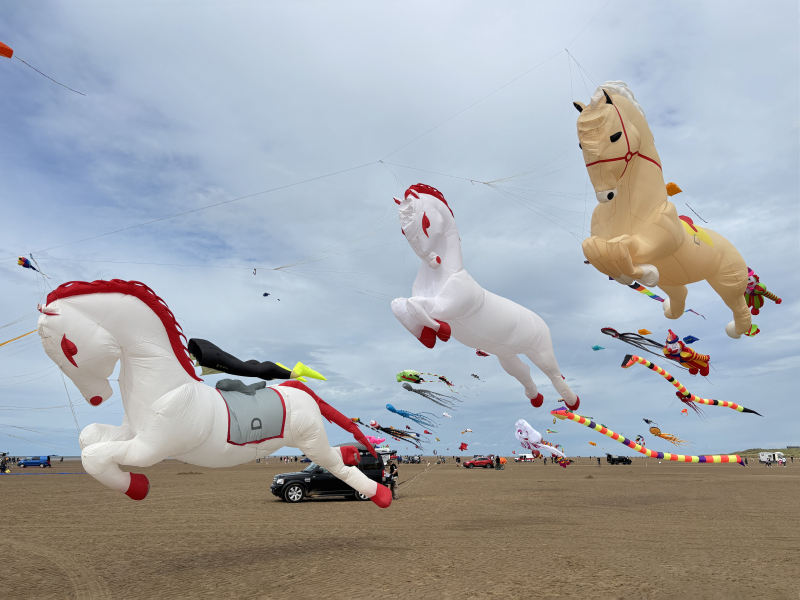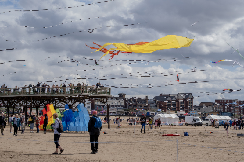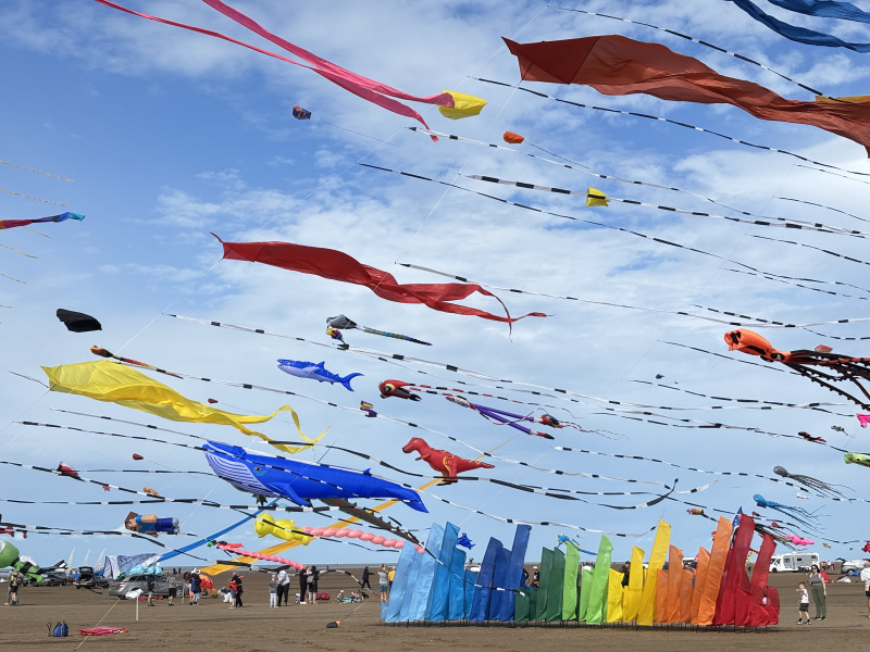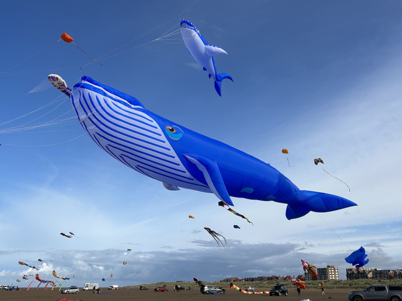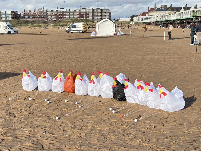 Organised by SmileFactor10, the St Anne’s International Kite Festival was held on the 29th, 30th and 31st August 2025. The festival will be remembered not just for how windy, and at times wet it was, but for the fantastic efforts of the fliers. We arrived at midday on the Friday shortly after a heavy downpour and therefore the beach looked like the tide had come in. For many, plans changed in terms of kites being flown due to the ground conditions and wind strength. When it came to the night flight the sky was filled with LED lit kites as well as some lit by the strong floodlights. Another great night fly.